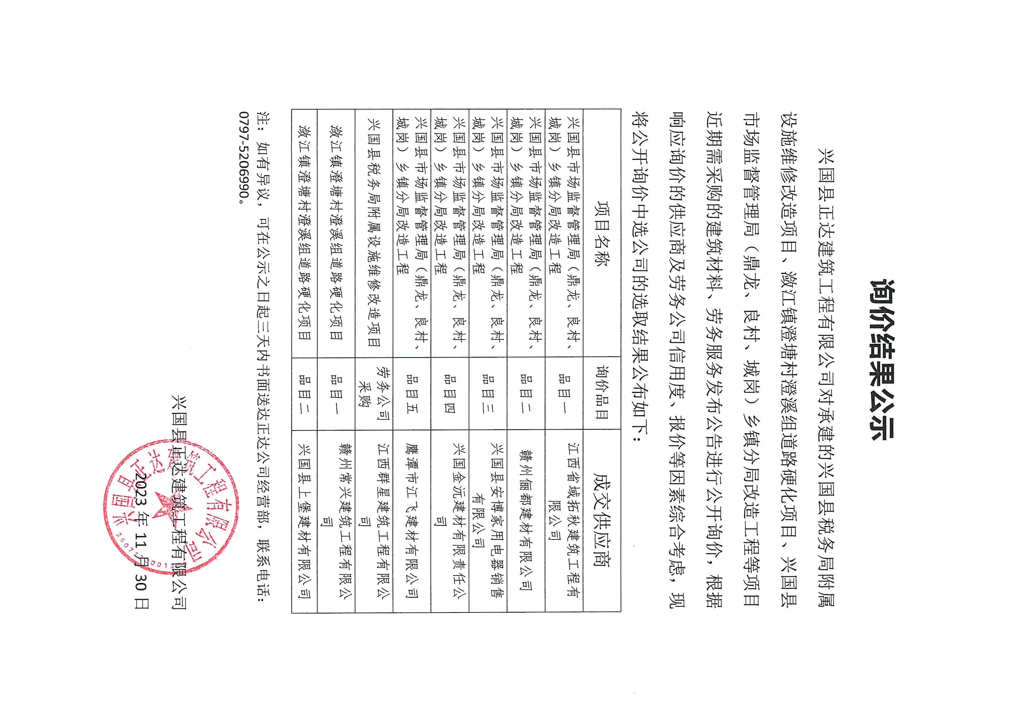兴国县税务局附属设施维修改造等项目材料、劳务服务公开询价结果公示