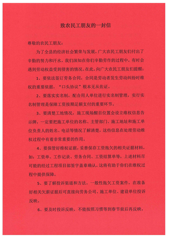 致农民工朋友的一封信